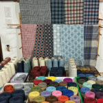 1回目の課題、千鳥格子のマフラーや色サンプルを持って集まりました