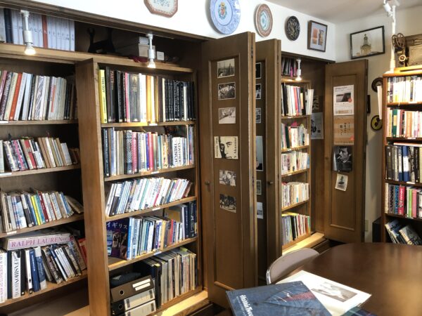説明してくださるお話しの中に、私がスコットランドで訪ねた会社や工場、また伝統的なチェックデザインなど、共有できることを多くお持ちで、とても嬉しい経験をさせていただきました。たくさんの資料の英国の書棚には、私のツイード織りの教科書である「Scottish Estate tweed」の本もありました。